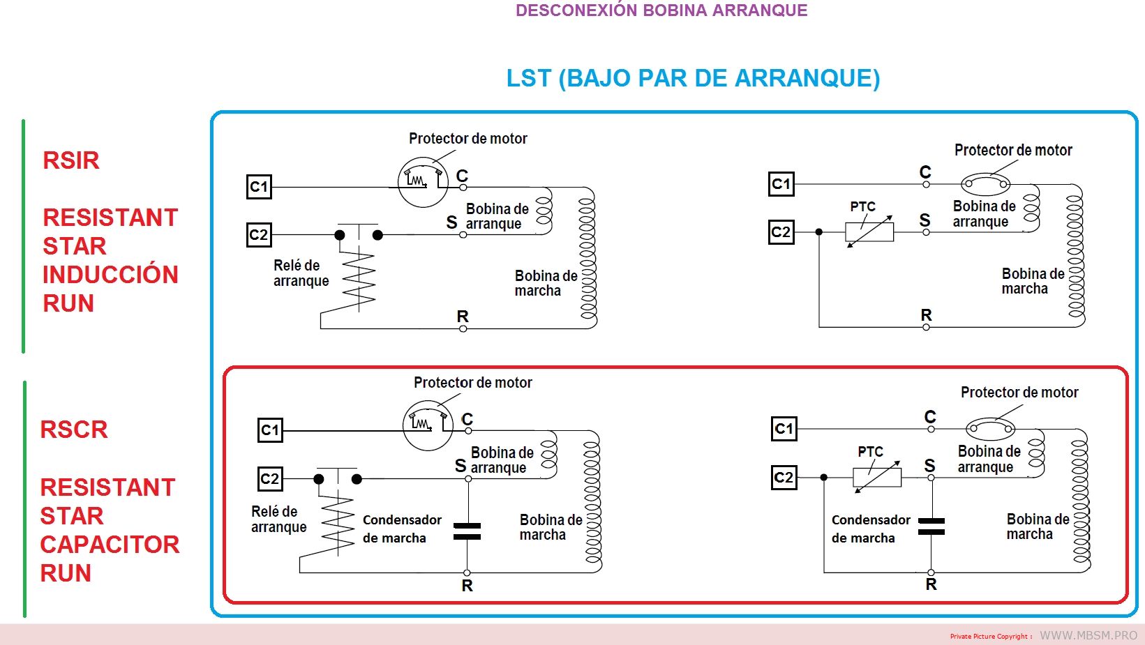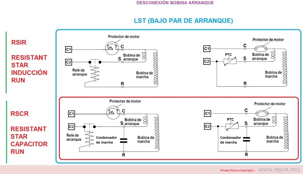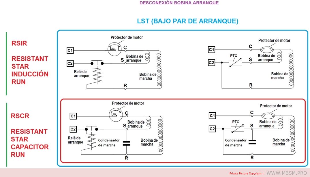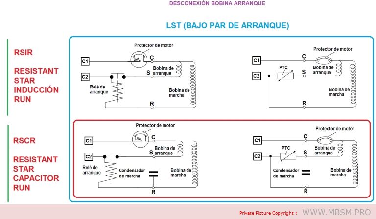 Compressors with RSIR and RSCR system motors have a low starting torque (LST) and are used in refrigeration appliances with capillary tubes, where pressure equalization takes place before each start.