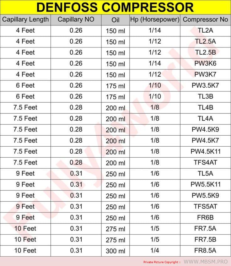 Danfoss compressors offer a wide range of models to meet diverse refrigeration and air conditioning needs. Understanding the specifications, such as capillary length, oil quantity, and horsepower, is essential for selecting the right compressor for your application. With their robust design and efficient performance, Danfoss compressors continue to be a preferred choice in the industry.