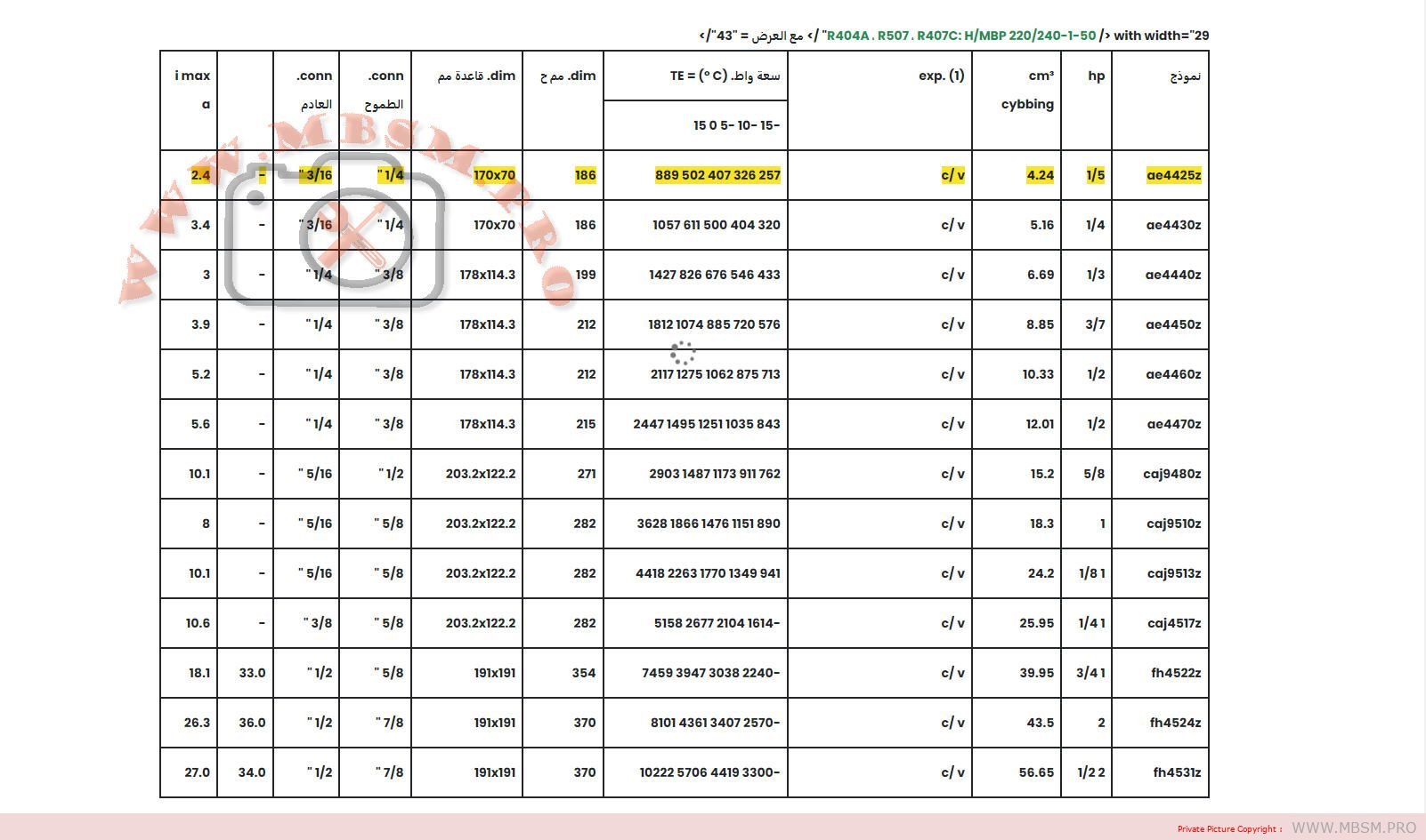 R404A, R507, R407C : H/MBP 220/240-1-50