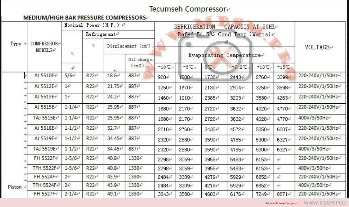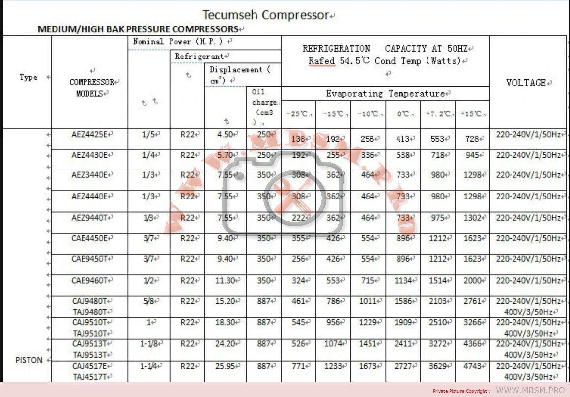 This compressor is no longer available and has been replaced by the Tecumseh CAJ9513Z (POE), HBP – R404A, 220-240V/1/50Hz Tecumseh CAJ9513T is a HERMETIC compressor for high pressure (HBP)• engine type: CSR• displacement: 24.2 cc•.