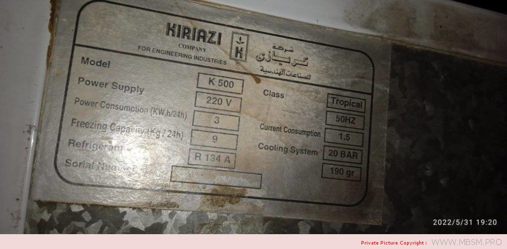 Mbsm.pro, Kiriazi Refrigerator, 14 Feet, Classic, ,330 Liter, Defrost, KR350/2, KR350, R134a, 160g, Compressor, 1/4 hp, Lbp