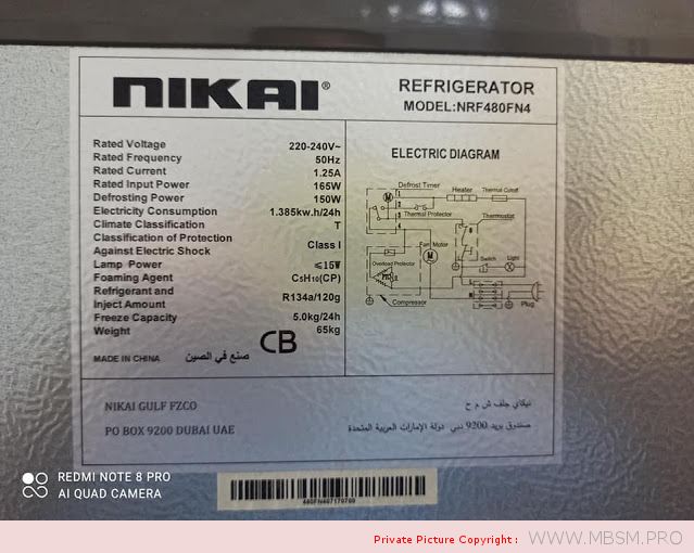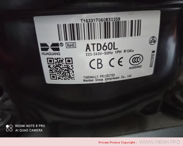RÉFRIGÉRATEUR NIKAI, nrf480fn4, 165W, Compressor, ATD60L, Wanbao Huaguang Refrigerator, 1/5Hp, R134A, 120G, 1.25A, 220V/50HZ