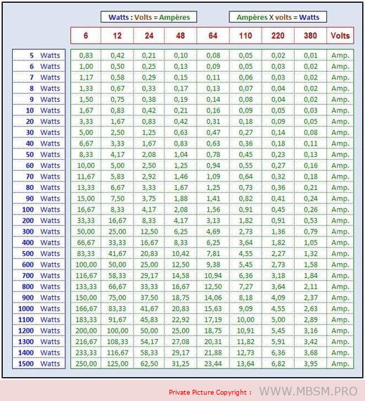 Mbsm.pro, Formule AMP, KW, KVA, HP pour les tensions AC et DC.