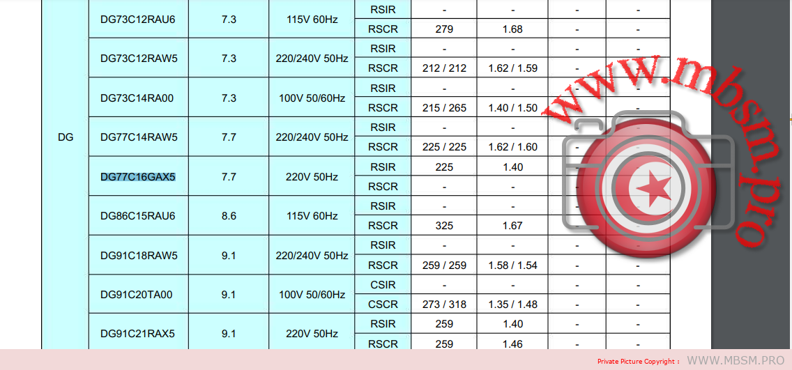 Parts no DG77C16GAX5(RSIR)