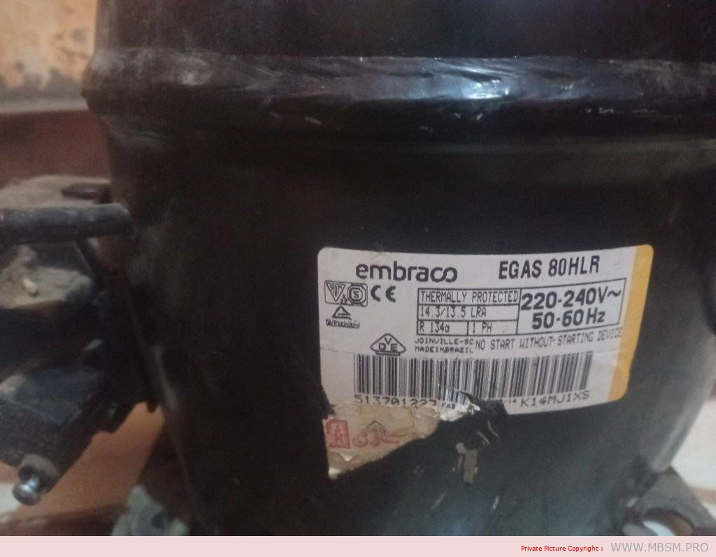Compresseur hermétique Embraco EGAS80HLR – HMBP – R134a 220-240/1/50 – CSIR Volume balayé : 6.36 cm³
