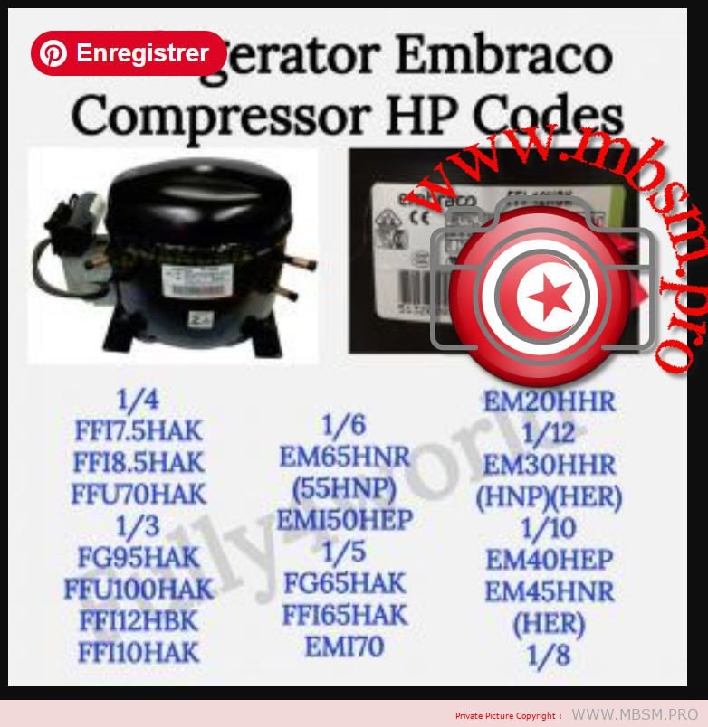 Refrigerator, Embraco, Compressor, 1/4 hp, FF17.5HAK, FF18.5HAK , FFUZOHAK, 1/3 hp, FG95HAK