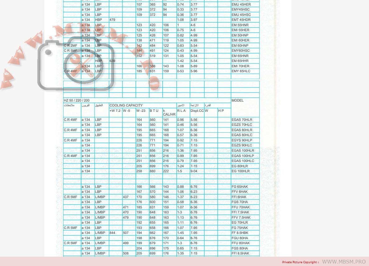 | Cap. Frigor. Watt | 208 |
