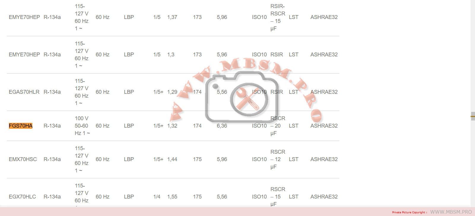 | Gas | R134a |