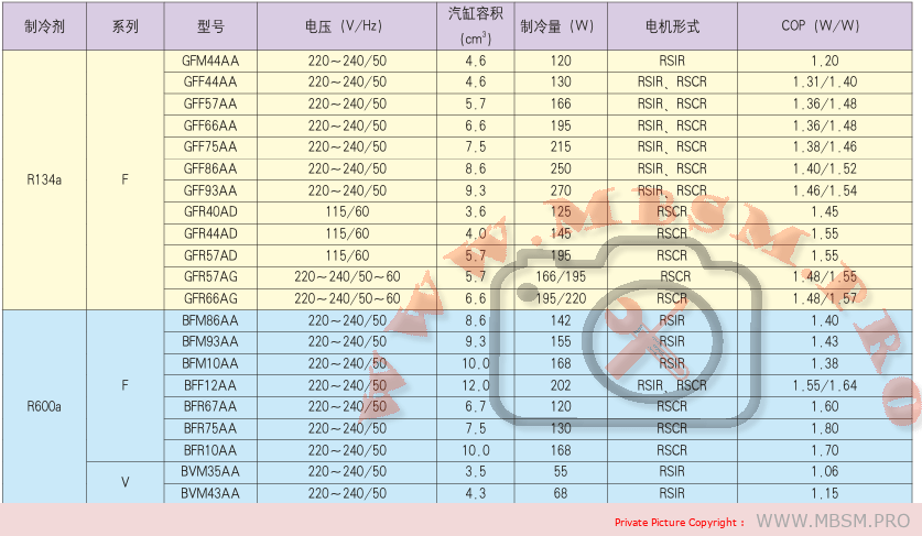 | R-134a | GVM 28 AA | 2.8 | 68 | 220~240V-50Hz |