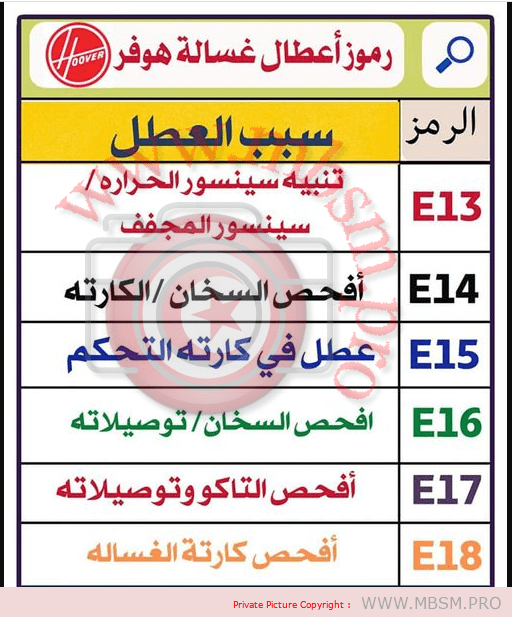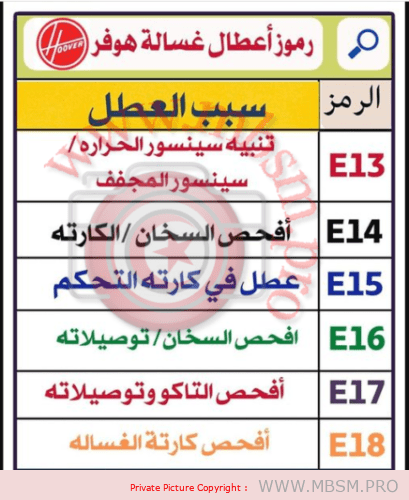 Tags: Hoover, mbsm.pro, رموز أعطال, غسالة هوفر