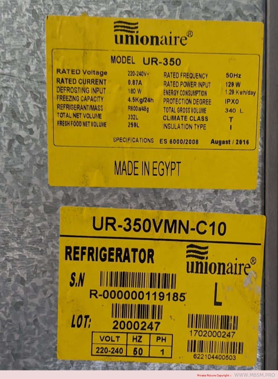 Mbsm.pro, Compressor, hpk190A, 1/4 hp++, 1/3 hp–,R600,HMBP, 220/240V, 50Hz, 12,11 cc , unionaire, UR-350, 340 L, R600a/48g, 0.87 A