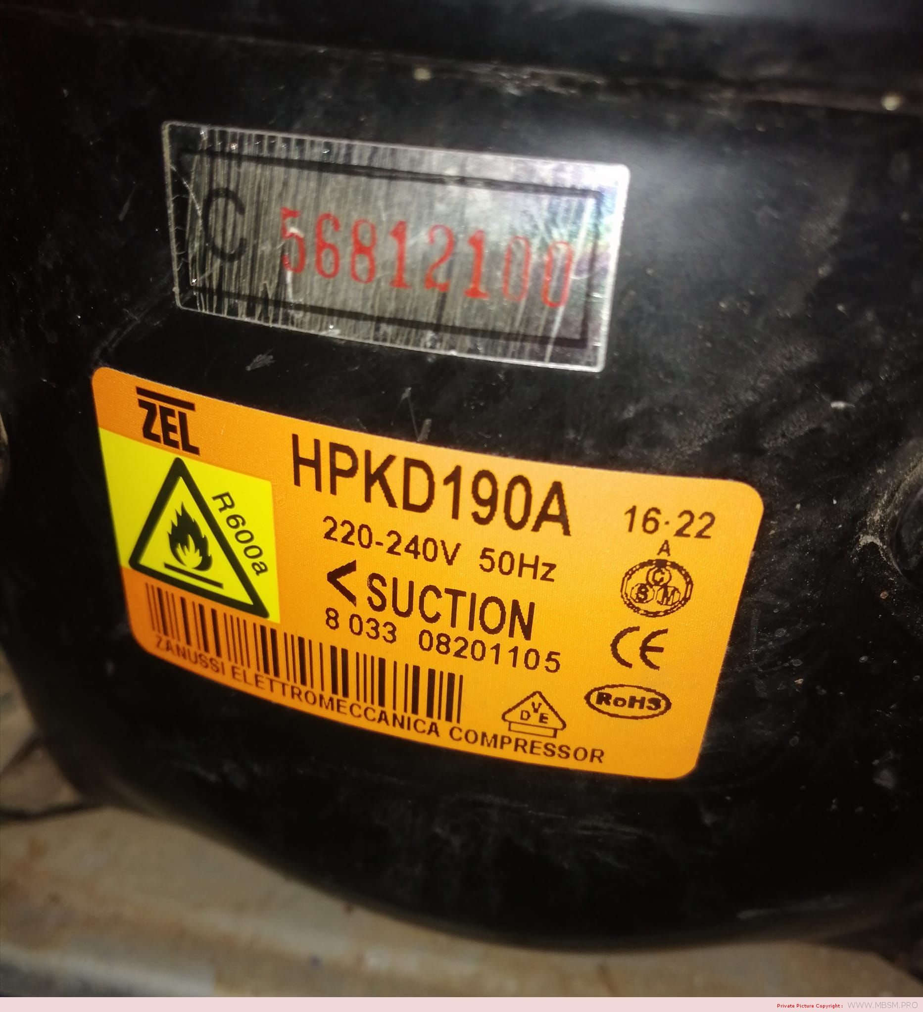 Compresseur – Zanuss HPKD190A (R600a) pr CD083 CD084 CD088 CD613 CD614 GL185 GD873 GD874 G377 G378 G379 G590 G592 G596 G597 G598 G603 G604 G605 G606 G607 G622 CN402 U636 U637 U638 DL914 DL915 GJ448 GJ449 GL182 GL183 GL184 GL187 GL188 GL456 CL108 CL109 CM433 CM530 CM531