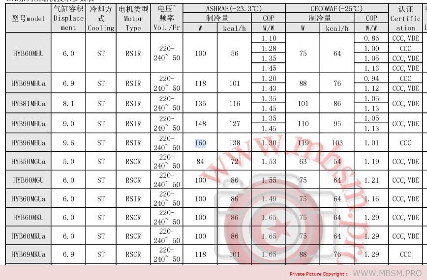 Mbsm.pro, COMPRESSOR HUAYI, hyb96mhua, 1/5 hp, 160 w in -23