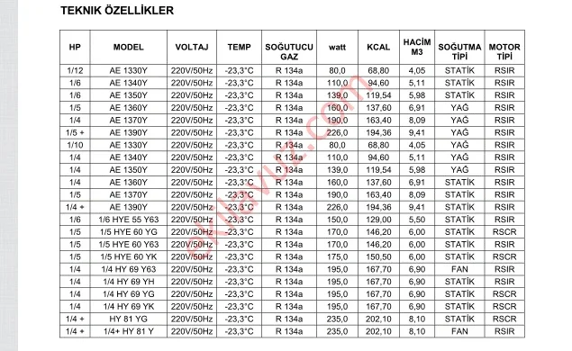 Huayi HYE 60 YL 63 1/5 Hp 146Kcal R134a 220V