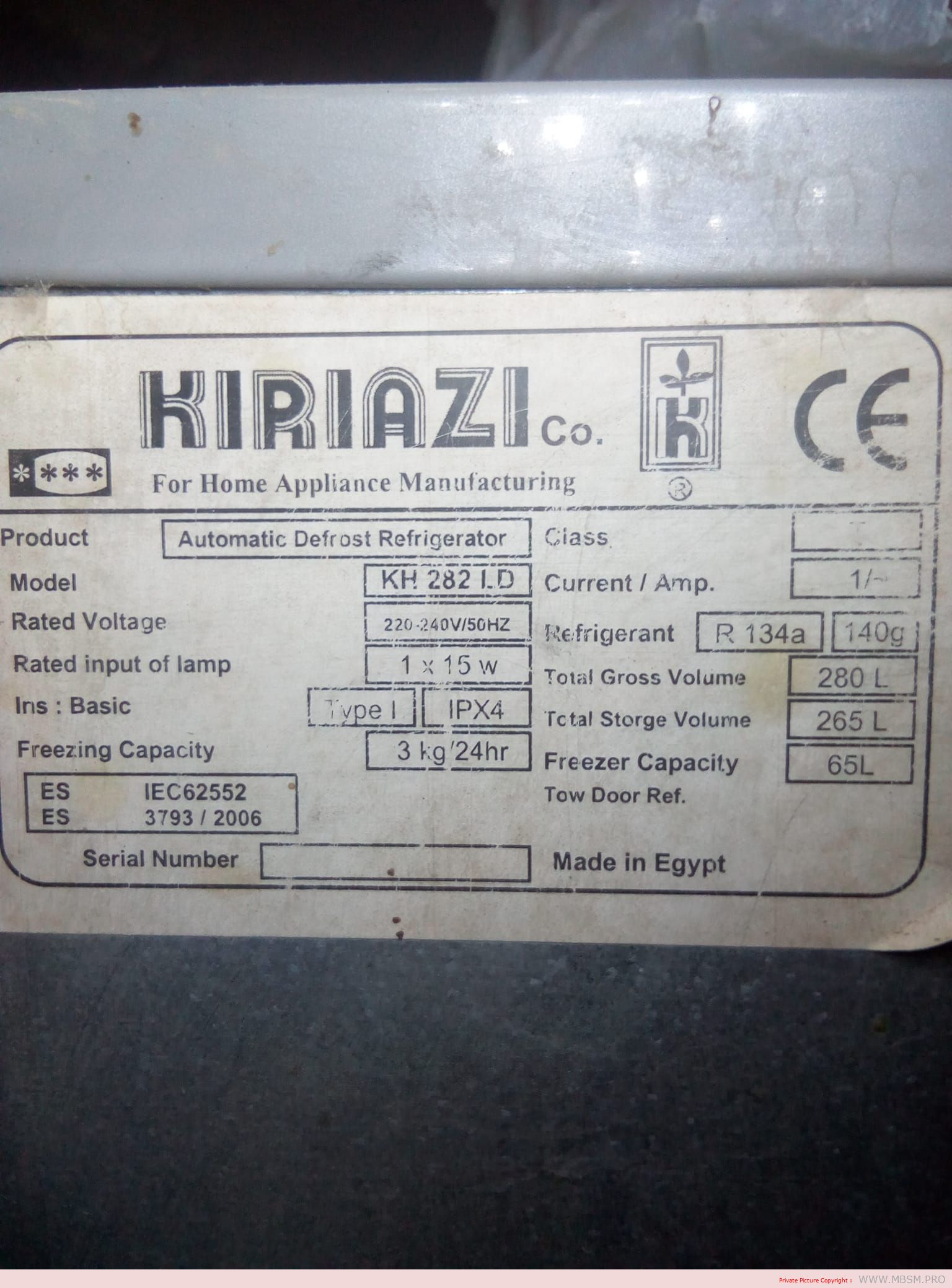 KIRIAZI REFRIGERATOR FRIDGE 10 FEET SILVER KH 282/1LD