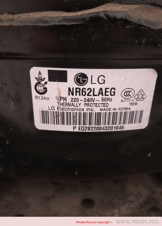 Mbsm.pro, compressor, Lg, Nr 62 lAEG, Nr62lAEG, r-134, 1/5 hp