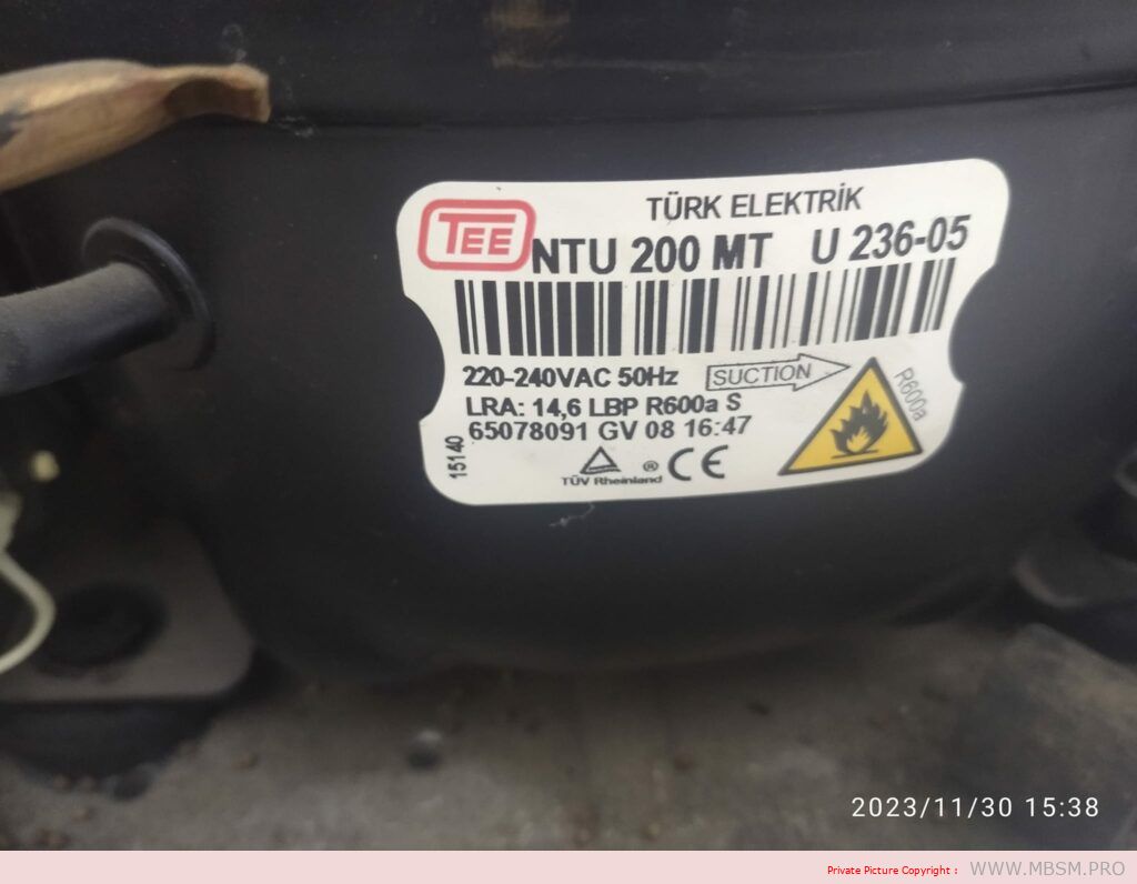 Mbsm.pro, Compressor, TEE compressor, Turk , 200 kcal, NTU200MT, 233 w, 1/3 hp, Lbp, r600a, lra 14.6A, Beko Compressor