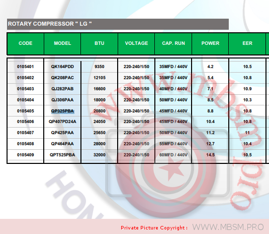 More QJ series LG compressor model as follow: