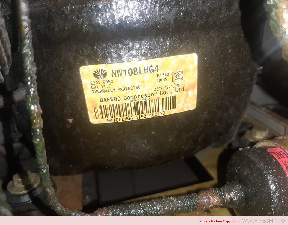 Mbsm.pro, Compressor, DAEWOO Compressor, Zed7003-9009H, NW108LHG4, R-134a, 1/2HP, 230V, Lbp, Single-Phase, Lra 11.7, 391 W, 336 Kcal/h, 1333 BTU/h, CSIR