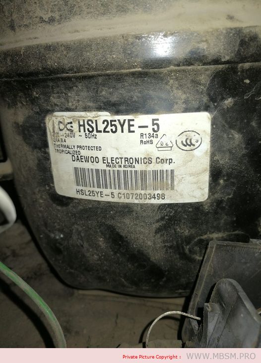 DAEWOO Compressor , HSL25YE-5, 1/5HP , 1PH, R134a ,220-240V 50Hz,Puissance frigorifique 176 W