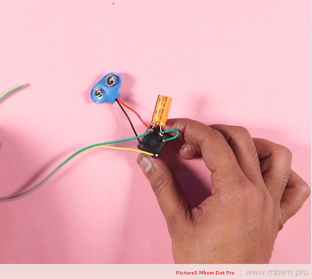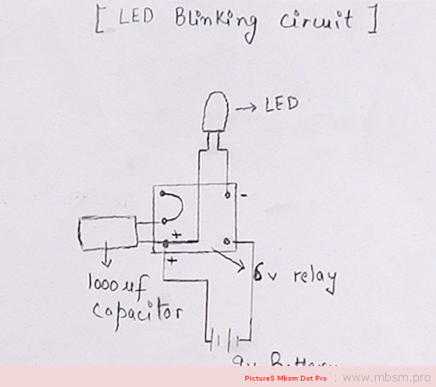 www.mbsm.pro ,PICTURE, How to Make, Blinking Indicator, With relay 6v , Condensor 1000uf , battery 9v , and a simple led