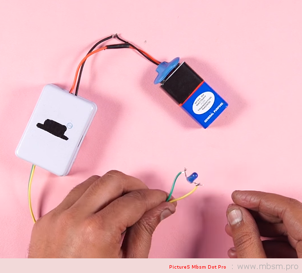 www.mbsm.pro , How to Make, Blinking Indicator, With relay 6v , Condensor 1000uf , battery 9v , and a simple led