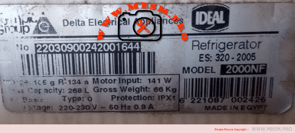 Mbsm.pro, Refrigerator, No frost, Made in Egypt, Ideal, 340NSL008, 2008, 338 L, compressor , 1/4 hp, HPL27YE – 5-K, r134a, 125 G,198 w, LBP