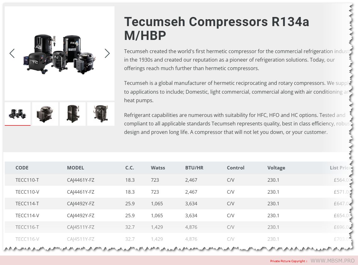 Mbsm.pro, Compressor , Copeland, CRFQ-0250-PFV-501, 2.5 hp, CRDQ-0200-PFJ-501, 2 hp, r22