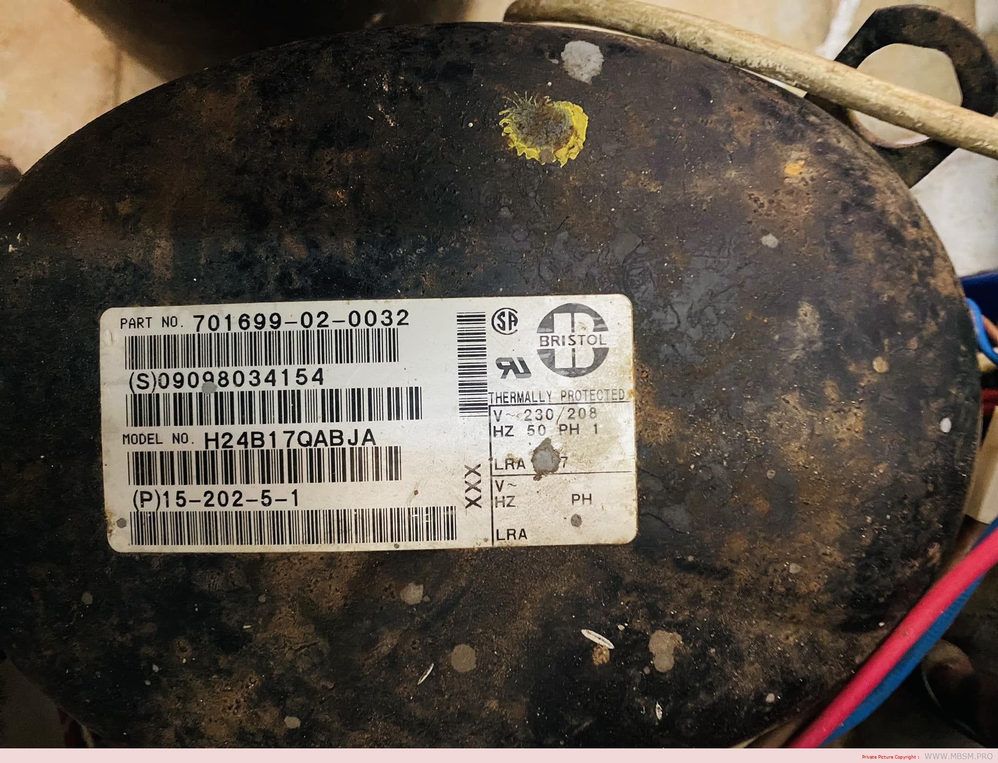 Mbsm.pro, Bristol, Compressor, H24B17QABJA, 17000 btu, 1.5 hp, r22, Capillary Size (0.060), Capillary Length 33″