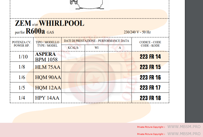 Mbsm.pro, Pdf, File, ATET, Compressori, ZEM, WHIRLPOOL, r12, r134a