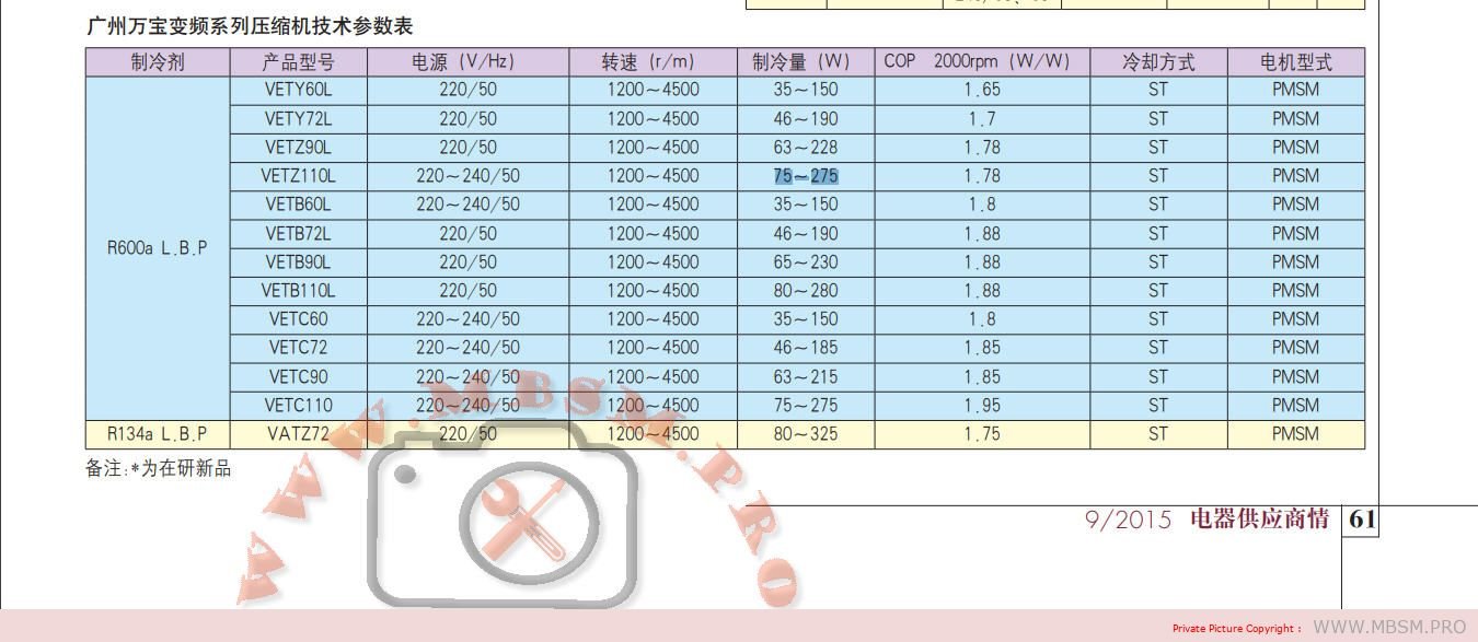 Mbsm.pro, Compressor, vetz110L, inverter, Bldc, variable speed, 1/3 hp, from 75 to 275 w, refrigerator, Ray-mrf-440gr, SIDE BY SIDE, RAYLAN, 440L, GLASS BLANC, 4 PORTS, r600a